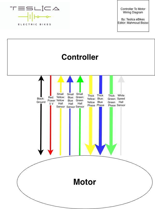 | Small Yellow | Yellow Hall Sensor | Toggle between 0 V and 5 V as you engage motor or pedal backwards |